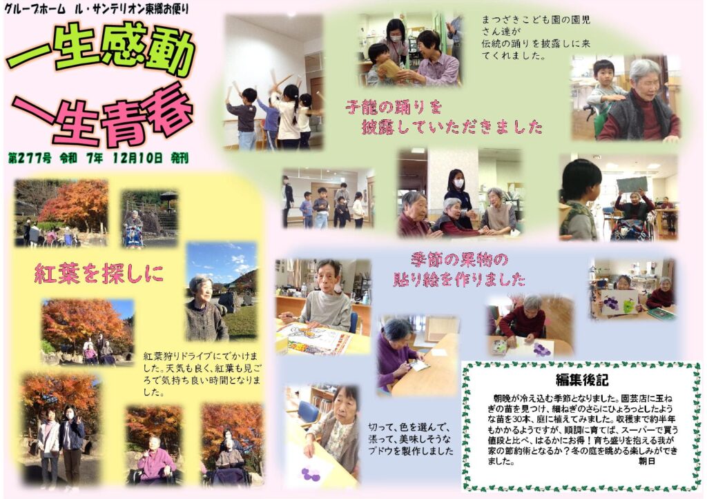グループホームル・サンテリオン東郷「一生感動 一生青春」、
