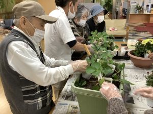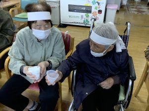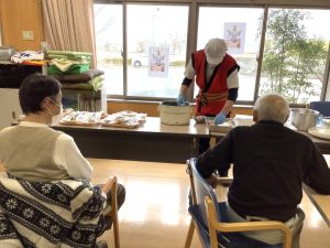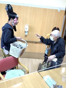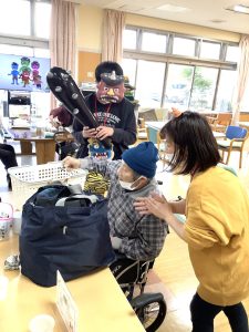 2月3日豆まきをしました。豆の代わりに新聞紙を丸めて鬼に向かって「鬼はー外!福はー内!」と力強く投げておられました。利用者の皆様が今年一年健康で過ごせますように!