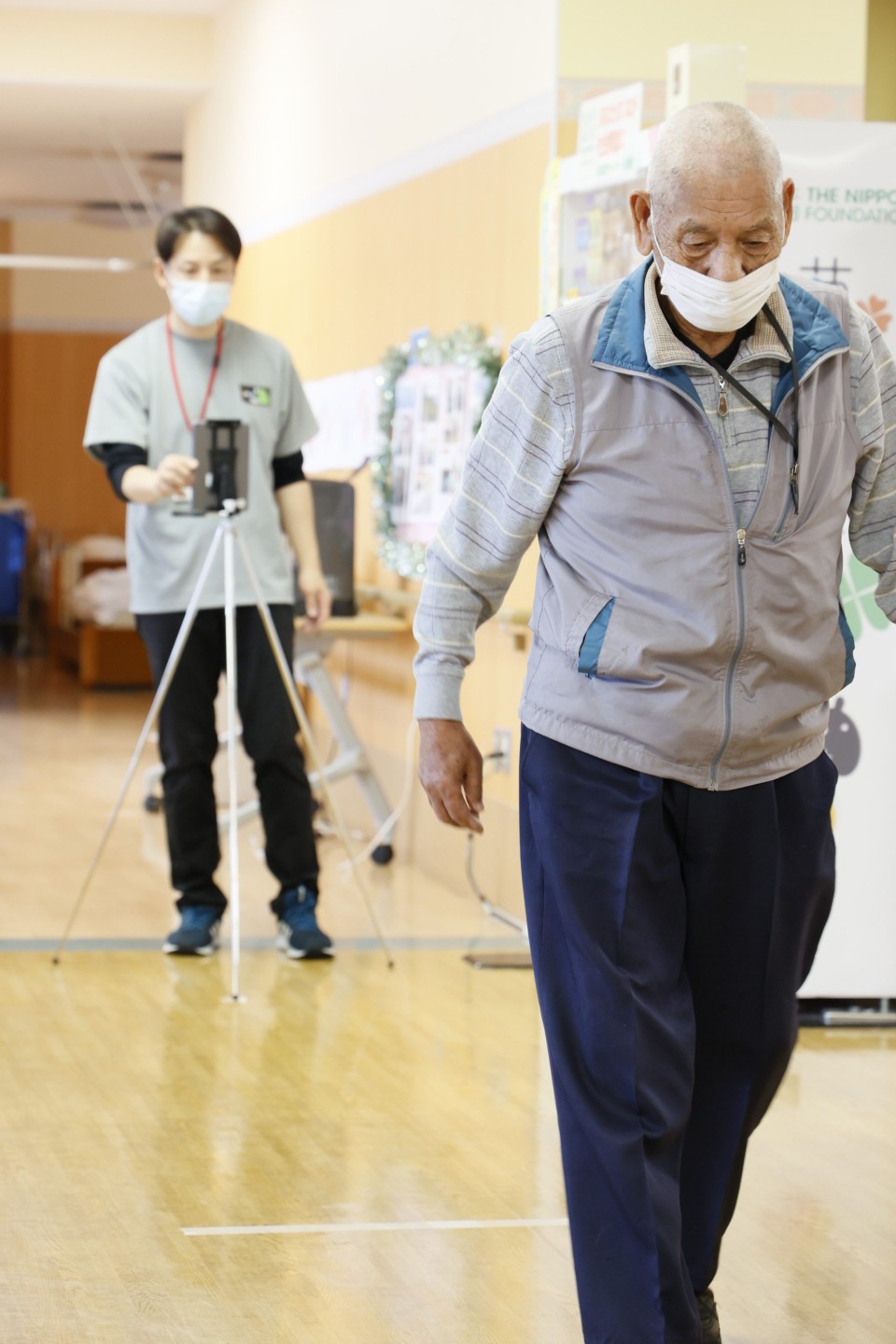 歩行分析AI(トルト)の説明を聞き、実際に歩行状態を分析されたり