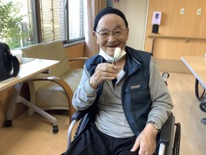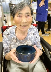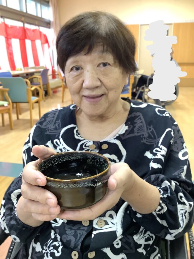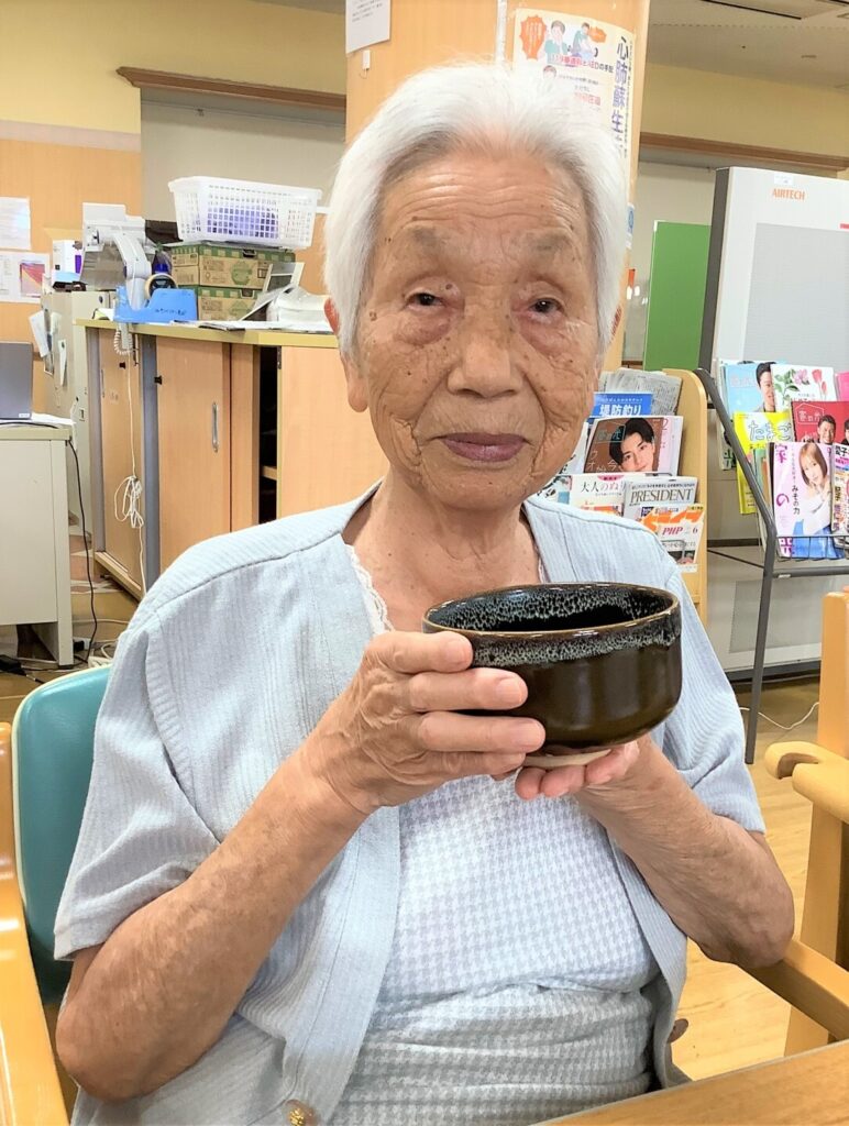 職員が点てた抹茶の味は「美味しい」「たまにはいいな」と喜んでくださいました。今回は職員が点てた抹茶をお出ししましたがご利用者の中に経験者も居られますので今度は皆さんに点てて頂こうと思います。