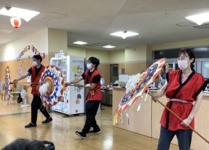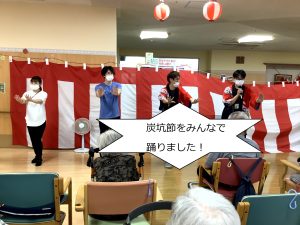 職員の踊りや射的などのゲームに加え綿菓子やかき氷を食べながら楽しんで頂きました。