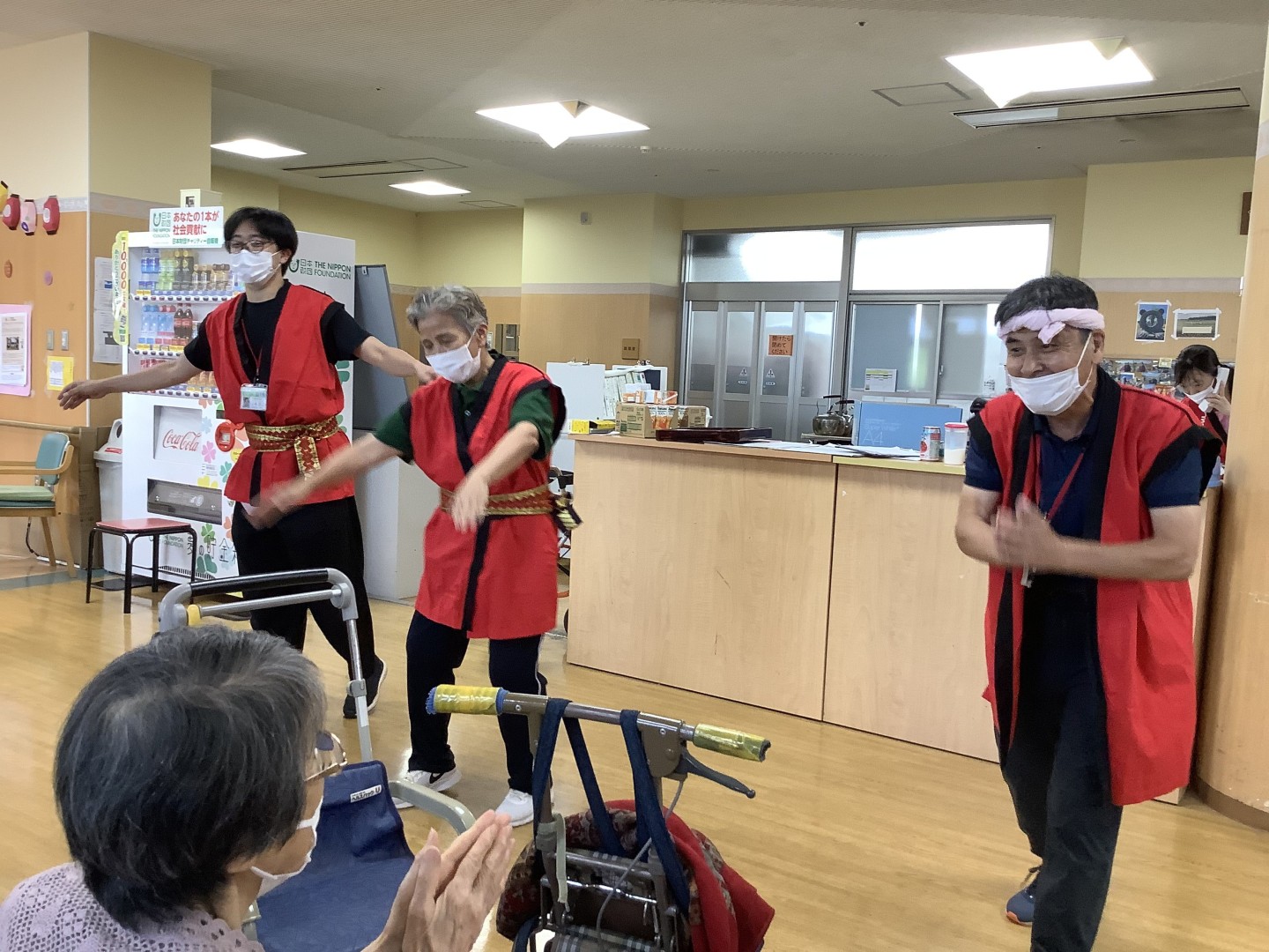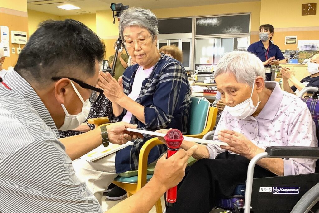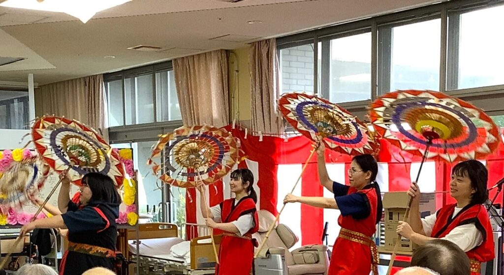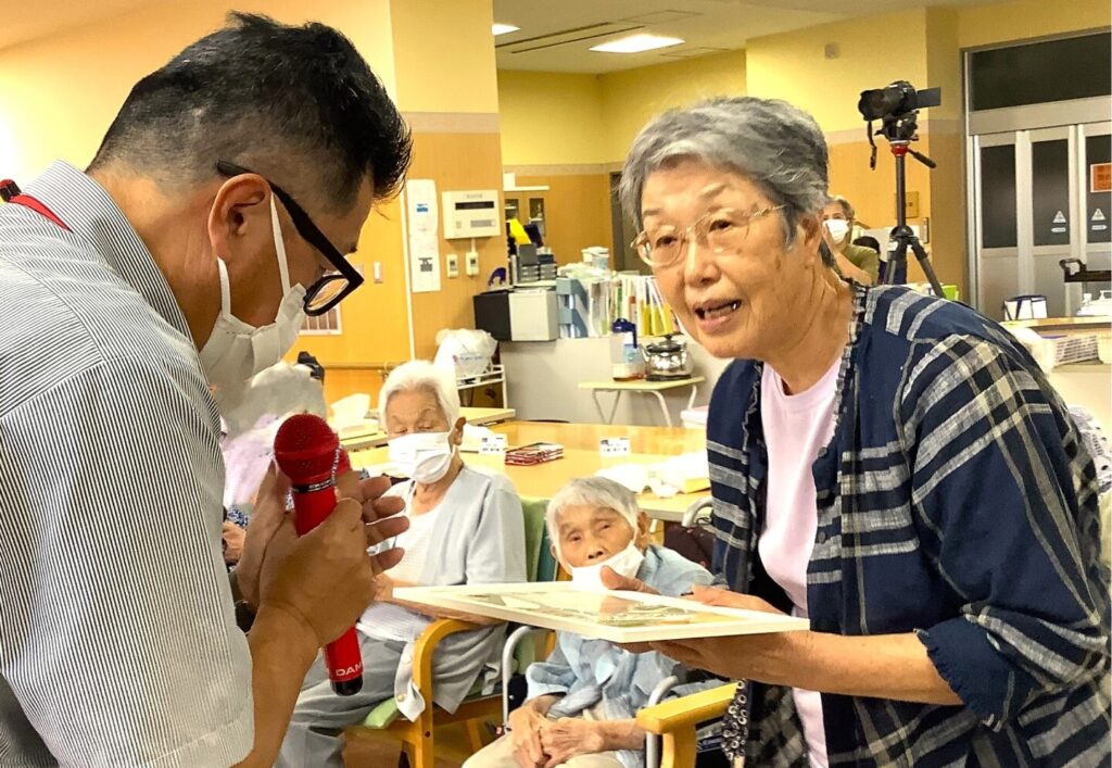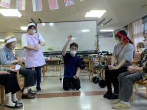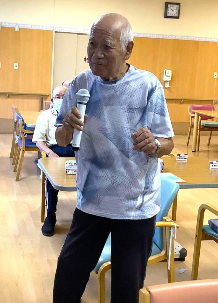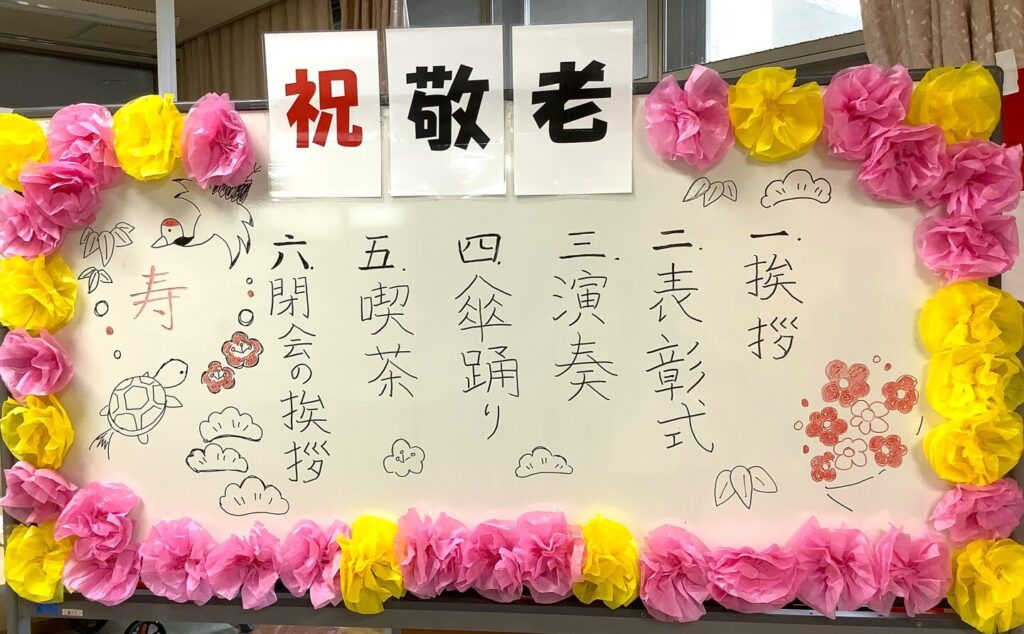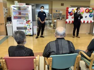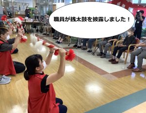 9月18日敬老会行事を開催しました!ご長寿のお祝いと職員の出し物のひげダンス・トランプマジック・銭太鼓を披露し盛り上がりました。