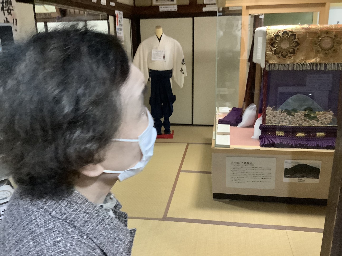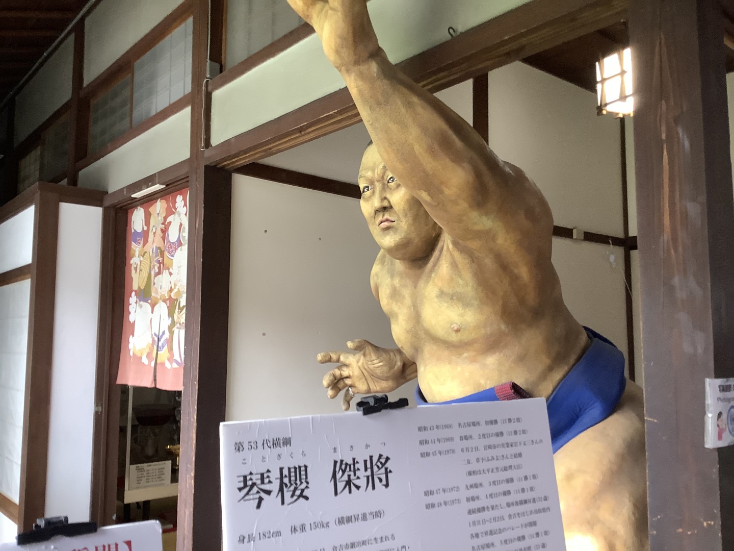 大きく迫力のある化粧まわしや草履などを見て「すごいもんだなぁ。」と驚いておられました。