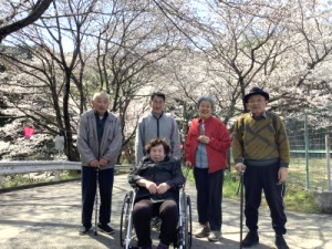 桜が満開に咲いており、利用者さんは綺麗な景色に喜ばれました。