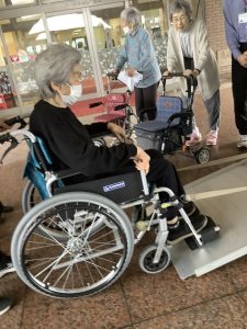 リハビリ体験では「この機器は身体にどの様な効果がありますか?」など質問されたり福祉車両乗車では「こんな機会がないと乗ることは無いな」など感想が聞かれました。