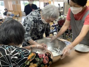 器用に握られていく手際を見て「見事ですなぁ」と見惚れるご利用者もおられました。