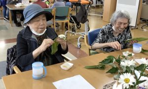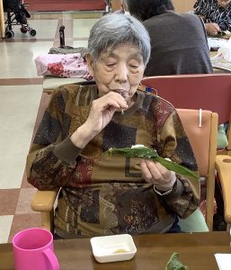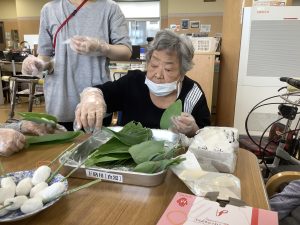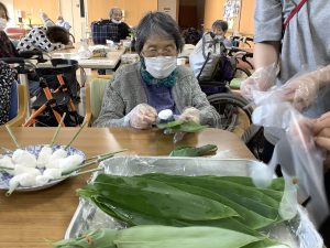 6月12日にちまき作りをしました。ご利用者上手にい団子を笹に巻いて美味しく頂きました。