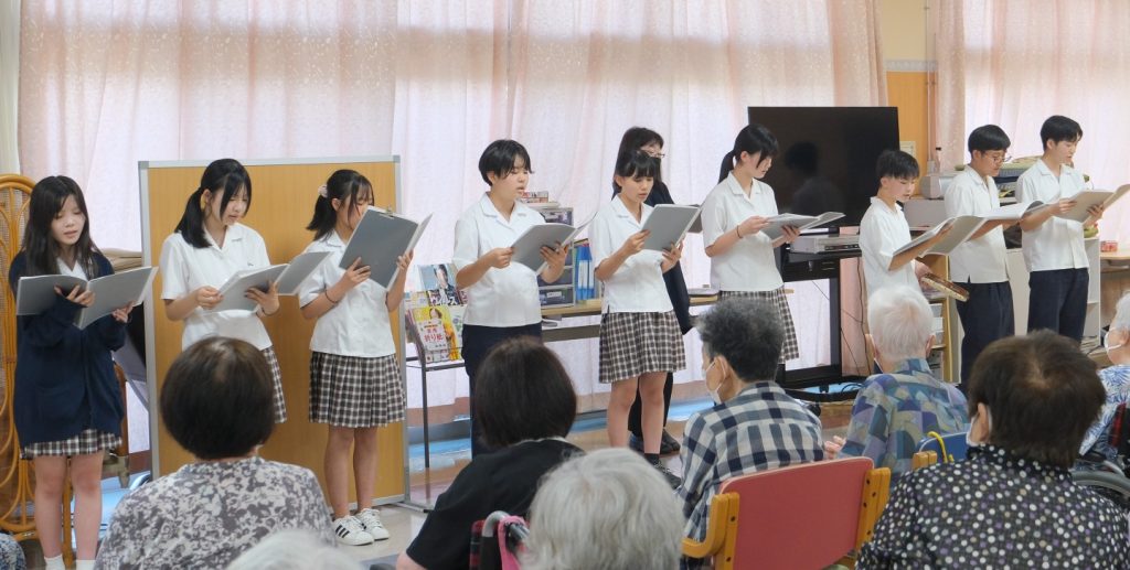 学生の歌声に合わせ手拍子をされたり、感動の涙を流されるご利用者も居られました。