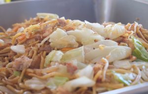 目の前で豪快に焼かれるそばと、ソースの匂いが食欲をそそります