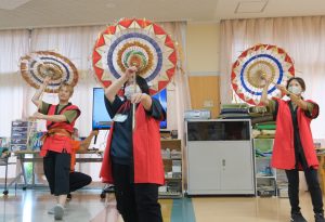当日は台風の影響を考慮し、予定していた湯梨浜学園の生徒による合唱は中止になりましたが、職員による傘踊り・炭坑節・バンド演奏、合唱を鑑賞し楽しみました。