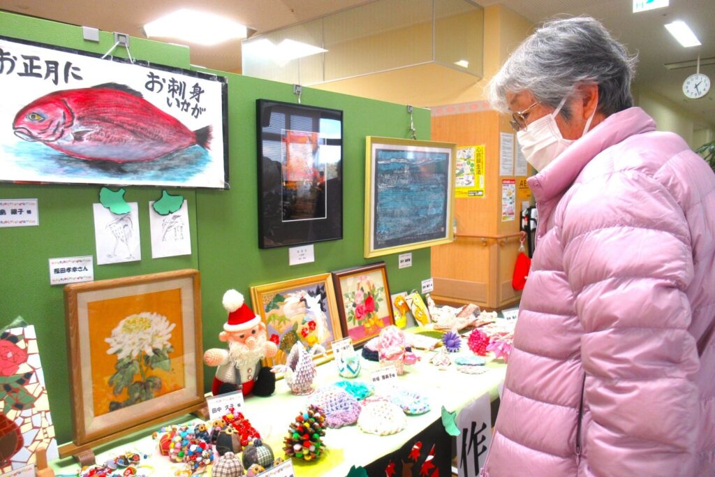 ご自宅で作成された絵画や小物入れ等を展示しています。