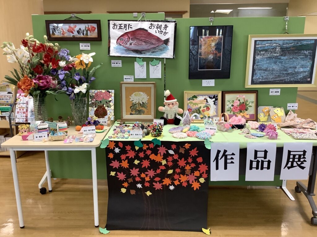 現在サンテリオン東郷玄関前では通所リハビリご利用者による作品を展示中です。