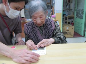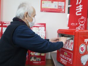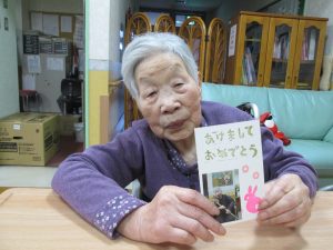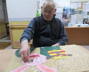 HOME > 新着情報 > お知らせ > 年賀状の作成 グループホーム東郷 年賀状の作成 グループホーム東郷 2023/01/04 お知らせ 11月中旬から年賀状作成に向けて、うさぎの貼り絵をおこないました。 これはご利用者だけではなく実習生に協力してもらいながら作成しました。 年賀状に貼る写真撮影を行いました。 後ろに作成した貼り絵がありますね。 写真を年賀状に貼り、スタンプや文字を書き年賀状が完成しました。 書き上がった年賀状はご利用者の代表がポストへ投函しました。 投稿ナビゲーション 前のページ 一覧に戻る