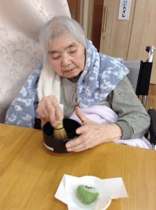 HOME > 新着情報 > お知らせ > 初釜 グループホームゆりはま 初釜 グループホームゆりはま 2023/02/06 お知らせ 1月17日に初釜を行いました。 今年になって初めての抹茶に「美味しいなあ。」の声。 茶菓子は松や竹、梅に鯛などお正月らしいものを用意し、 ご利用者様に選んでもらいました。 「どれにしようかな、迷っちゃうなあ。」と言いながらも好きな茶菓子を選び、 自分で点てた抹茶と一緒においしく食べられました。 投稿ナビゲーション 次のページ前のページ 一覧に戻る