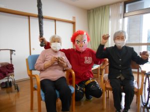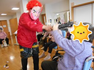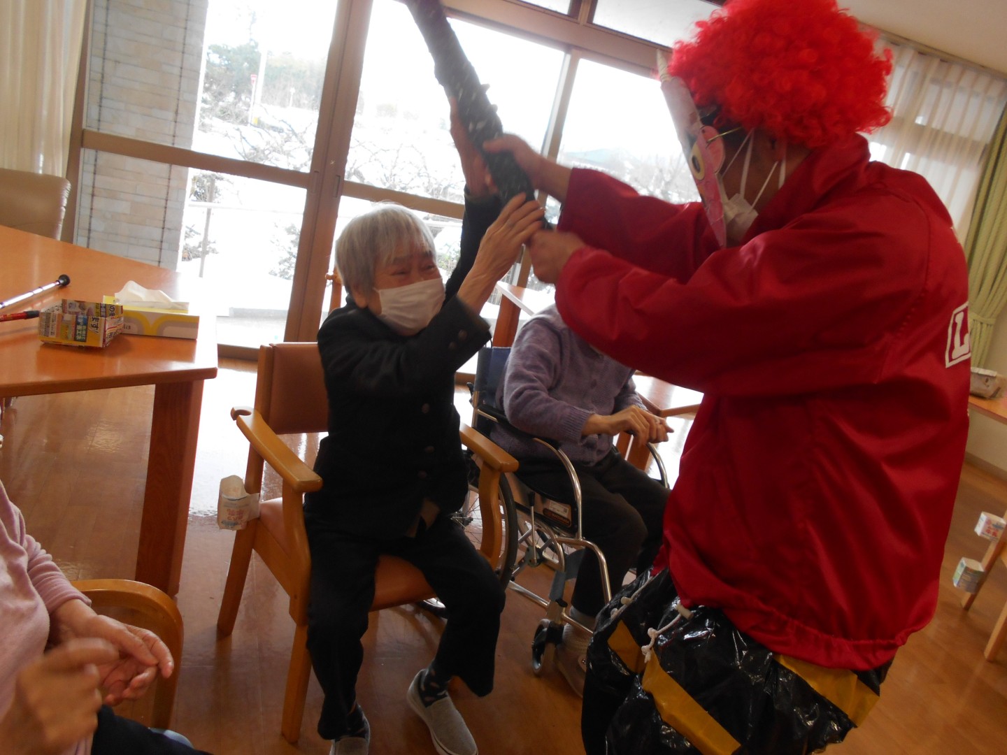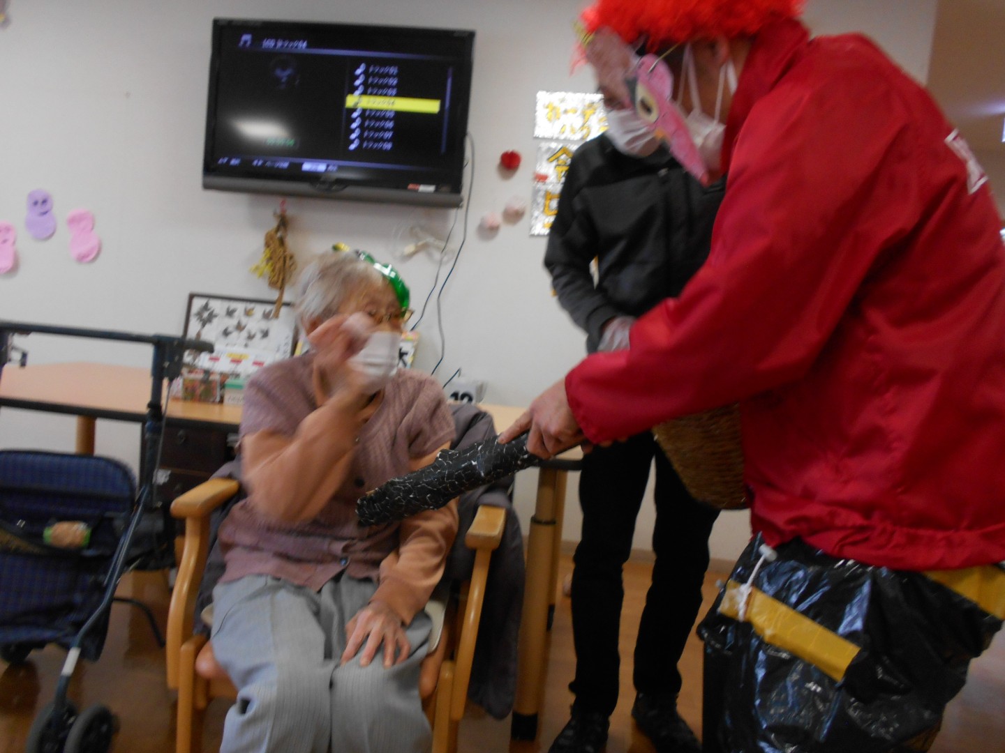 HOME > 新着情報 > お知らせ > 節分 ガーデンハウス野花 節分 ガーデンハウス野花 2023/02/08 お知らせ 2月3日に節分行事を行いました。 鬼からの攻撃を避けつつ 「鬼は外~福は内~」と掛け声をあげながら 豆の代りにお手玉を鬼めがけて投げました。 最後は赤鬼・青鬼と記念写真を撮り 美味しい甘酒とおやつを頂きました。 投稿ナビゲーション 次のページ前のページ 一覧に戻る
