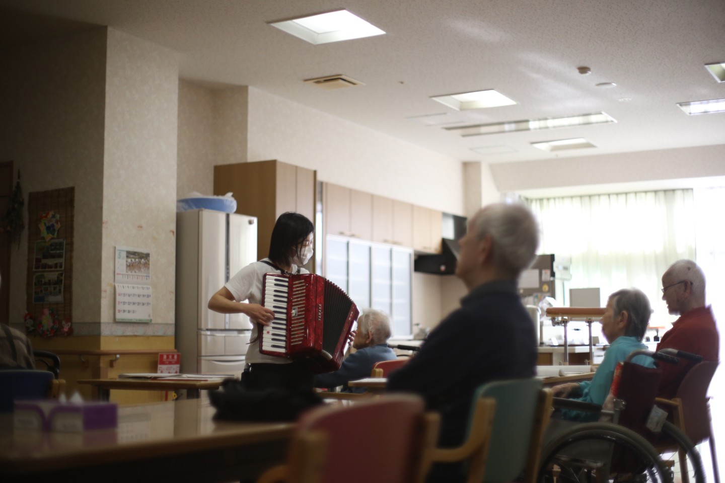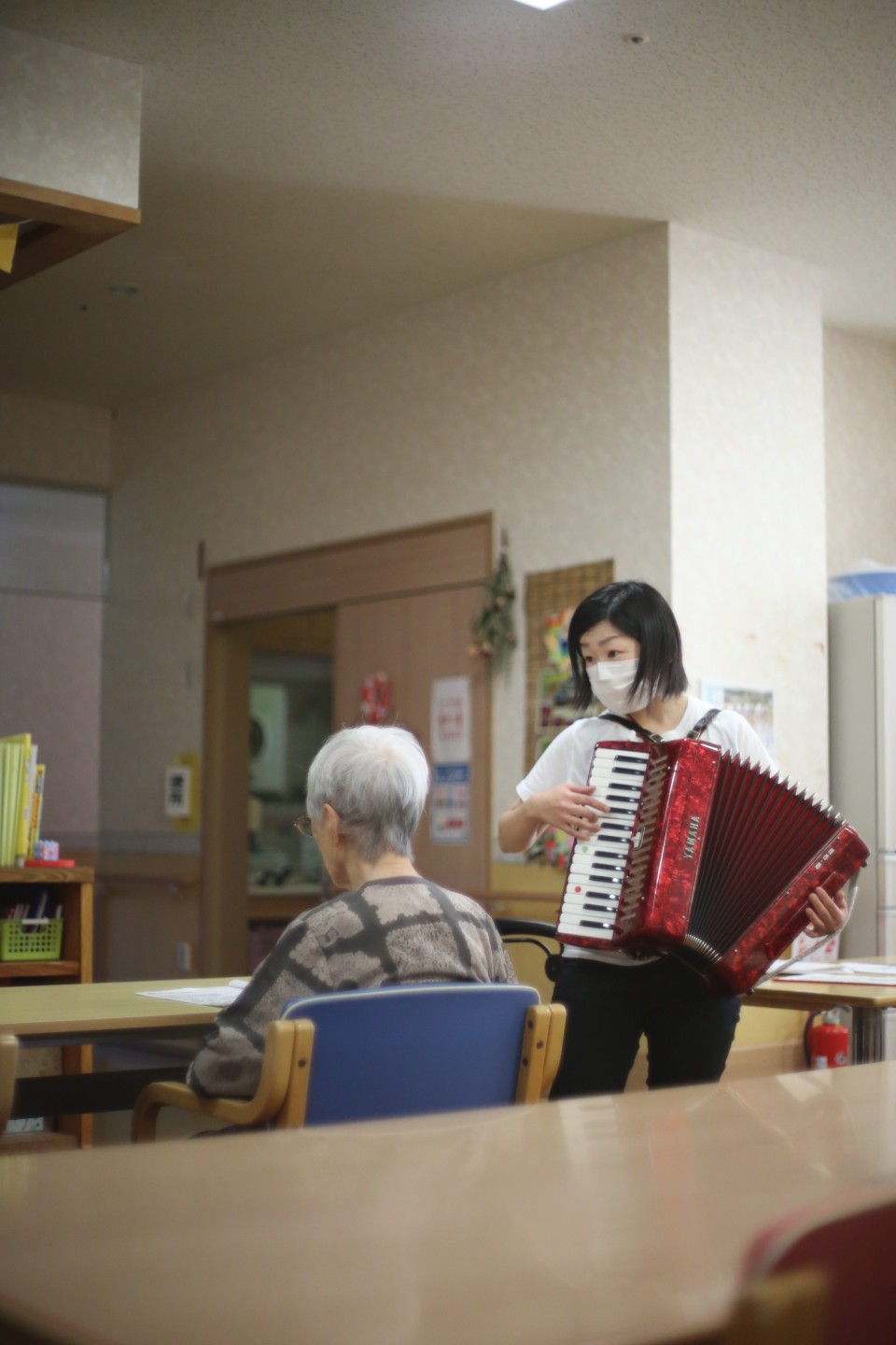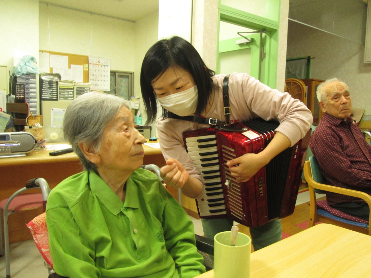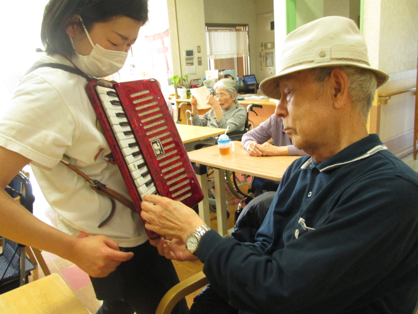 今年度から赴任した朝日主任はアコーディオンがとても上手です。
