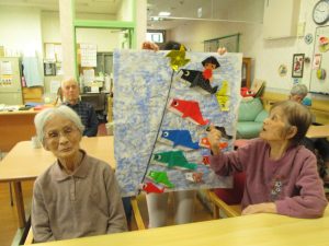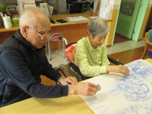皆様といっしょに大きな模造紙に色塗りを行い、