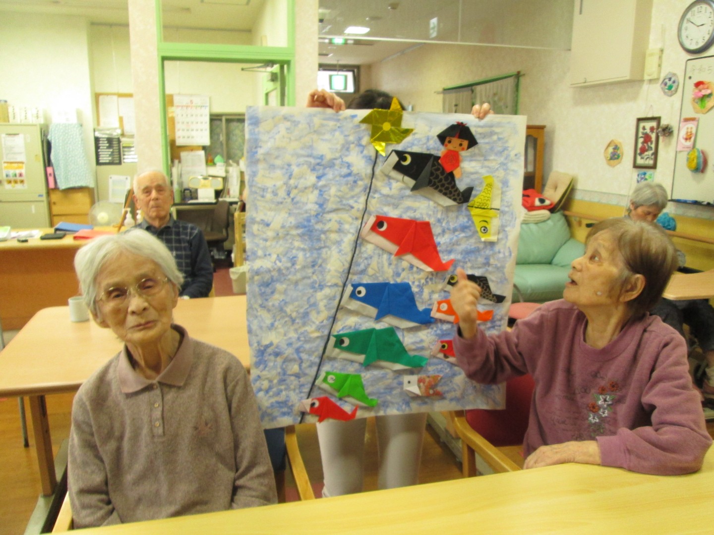 子どもの日にあわせてこいのぼりの掲示物を作成しました。
