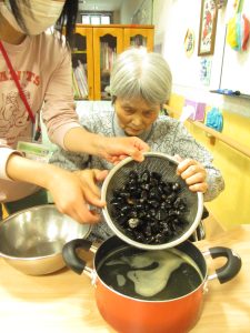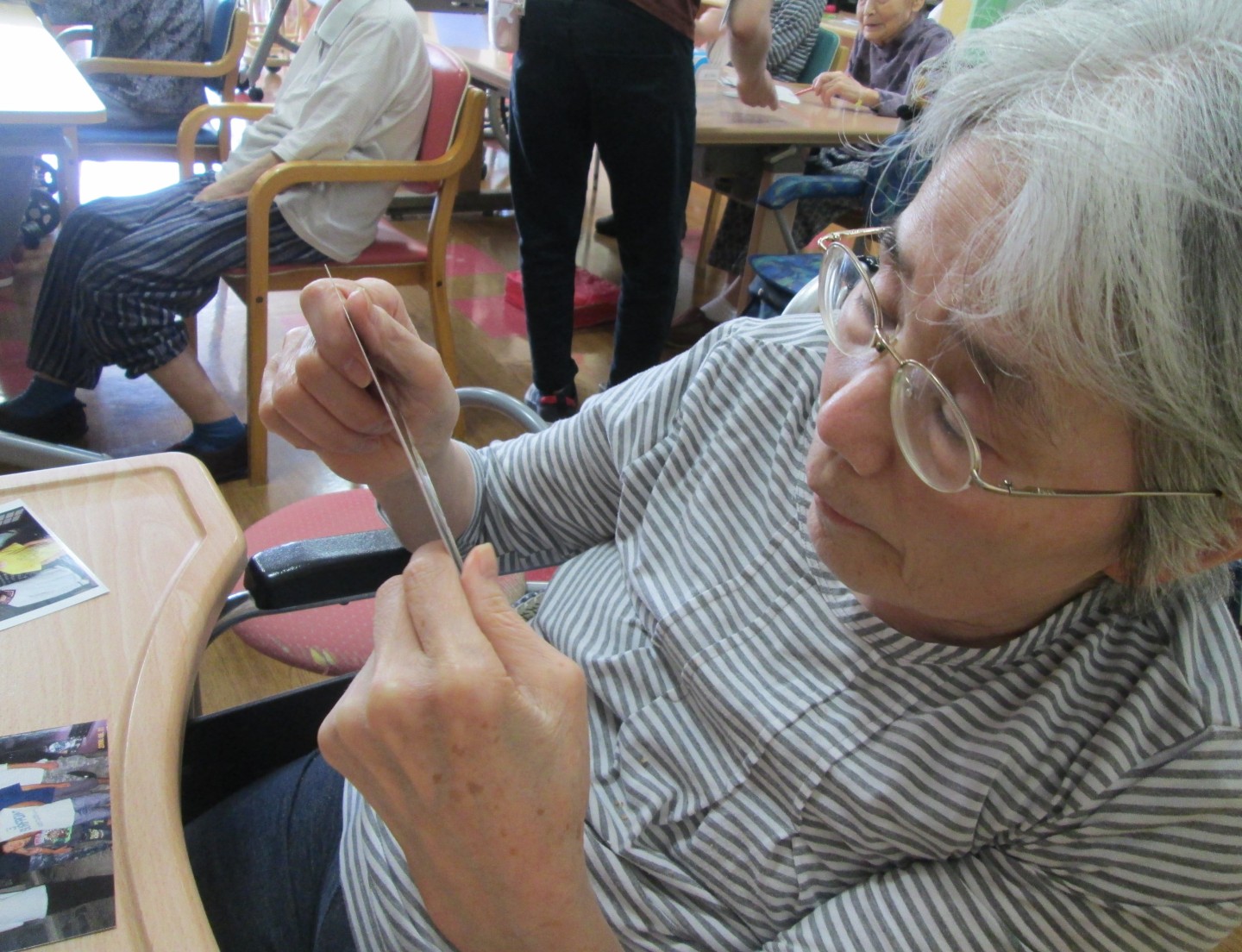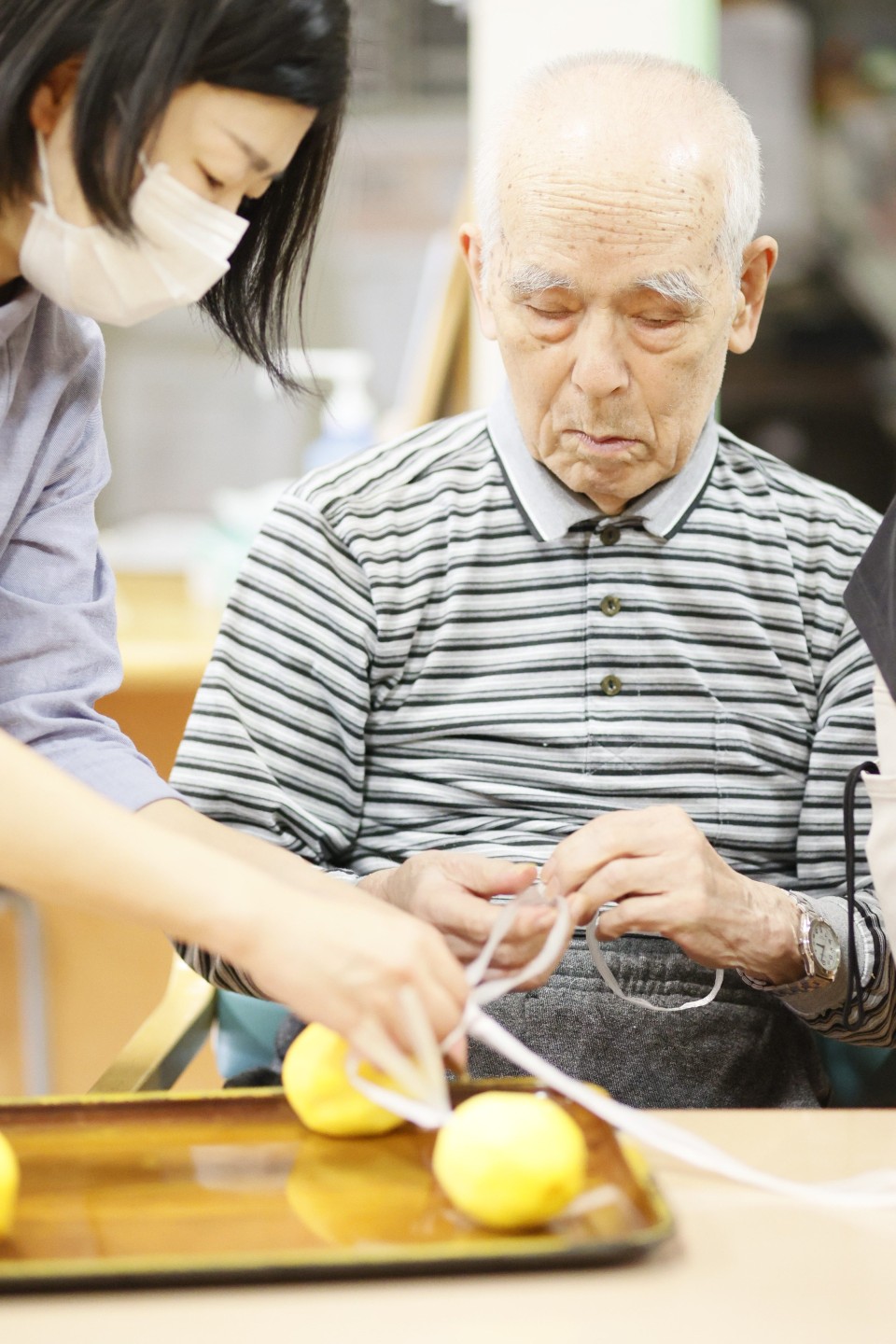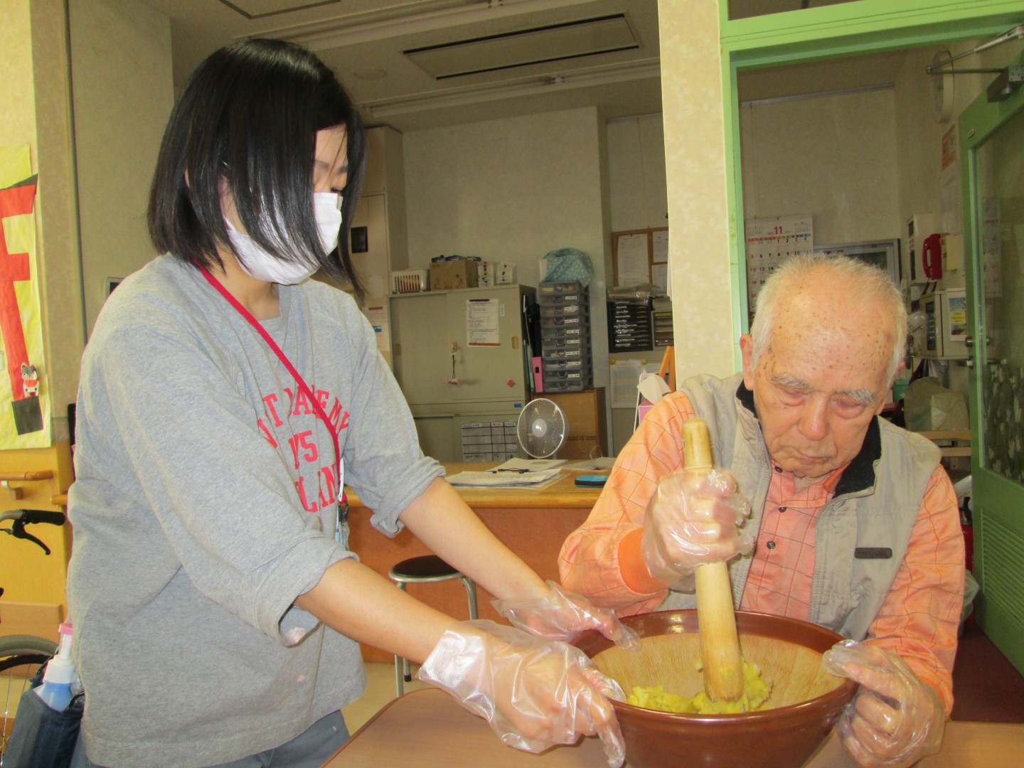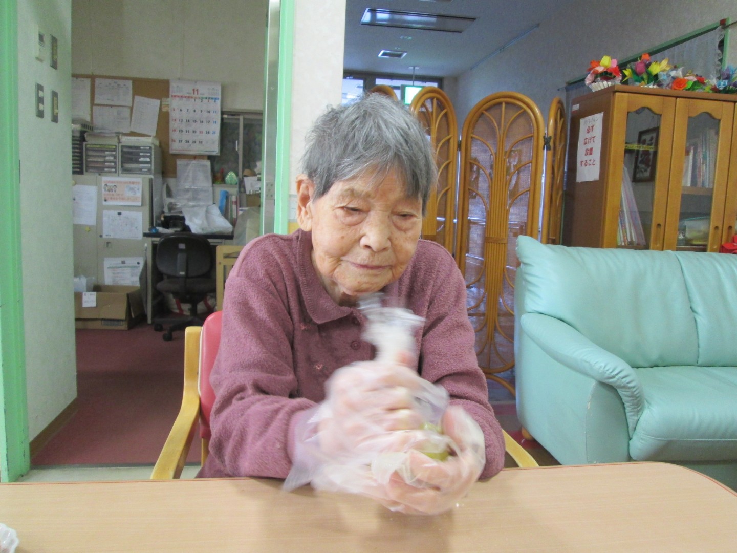 食欲の秋にちなみ、いただいた栗を使用して、ご利用者の皆様と栗ご飯を作りました。皆様が真剣に取り組み、完成した栗ご飯を笑顔で召し上がりました。季節の恵みを感じる心温まるひとときとなりました。