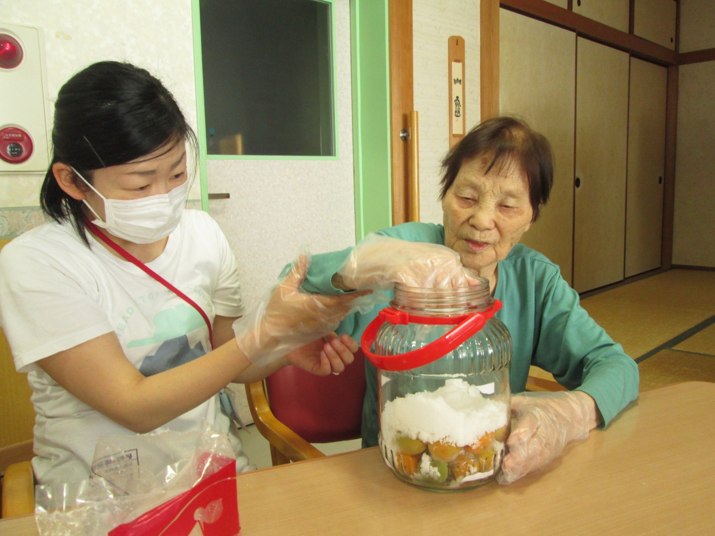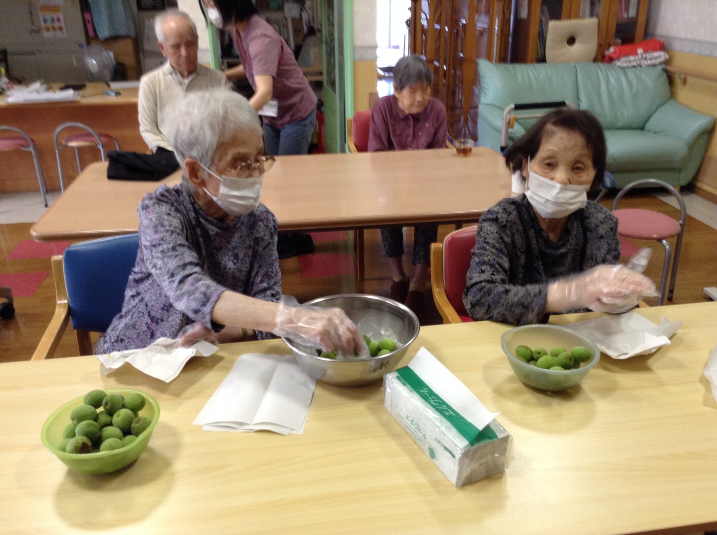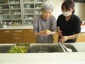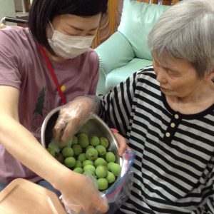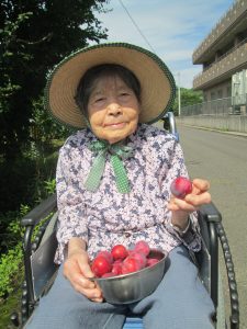 ご利用者さんと散歩をしながらすももを収穫し、後で他の皆さんと食べました。