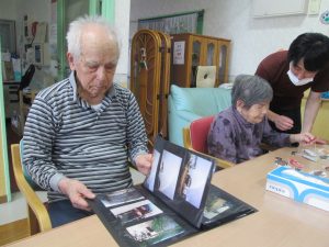 一緒に写真を見て職員は質問しながら写真についての話をしていきます。