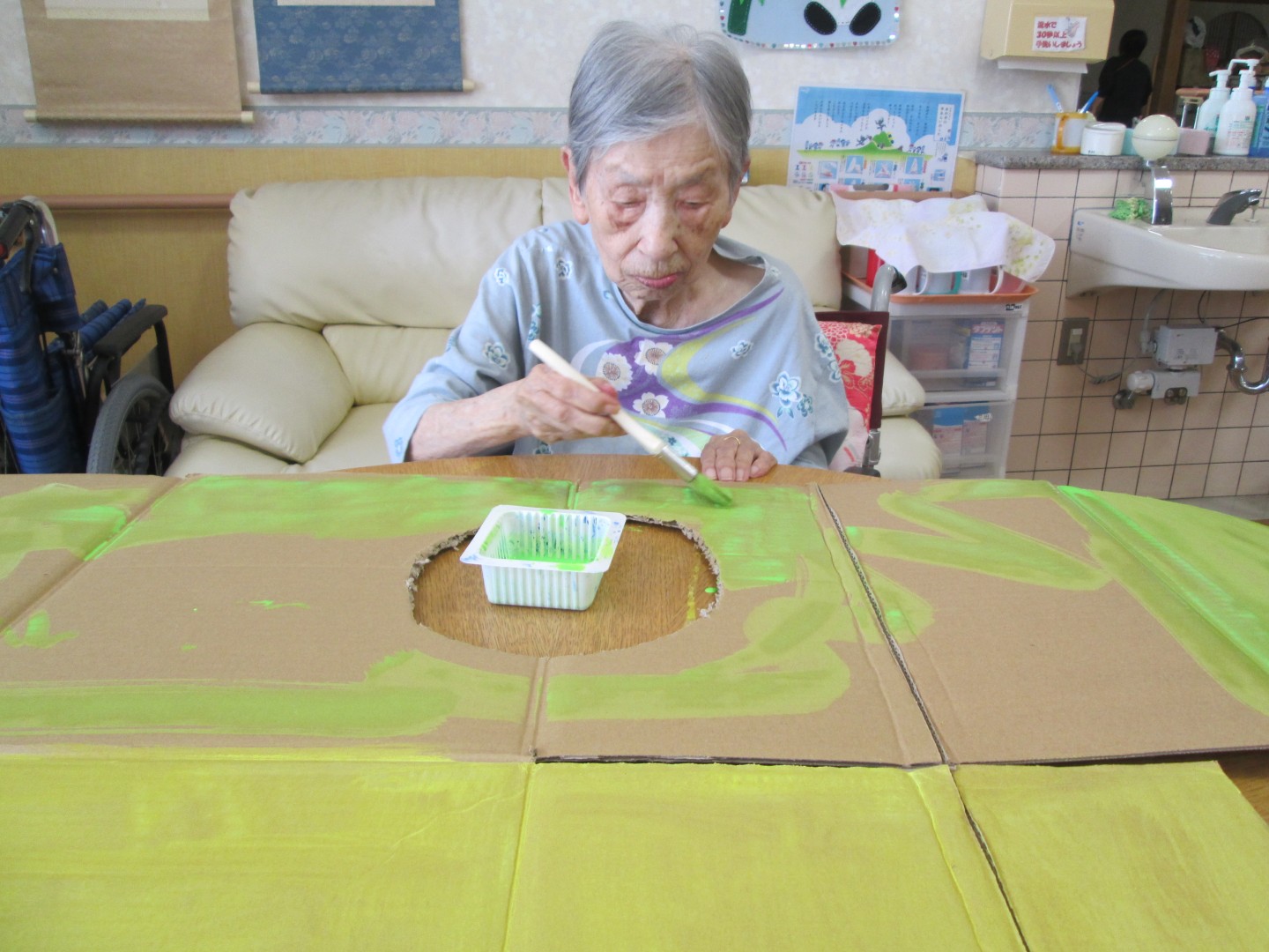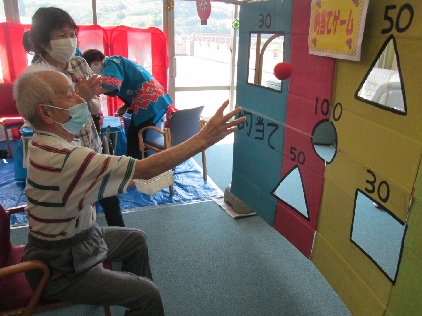 今年の夏祭りではご利用者と一緒に的あてを作成しました。