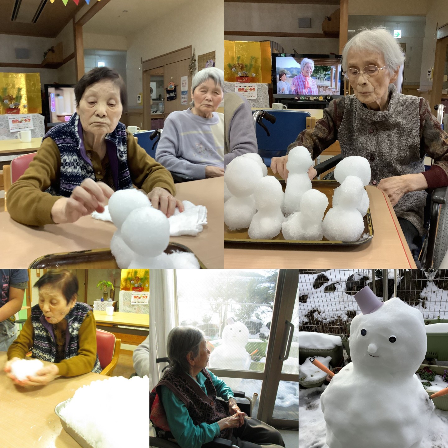 雪を室内に持ち込んでかわいらしい雪だるまを作りました。
