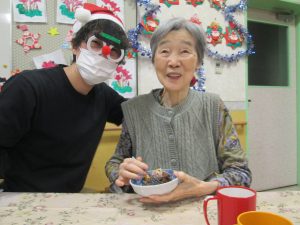 また、クリスマスにちなんだお饅頭をお配りしたところ、「美味しい」と大変好評で、季節の味わいを楽しんでいただくことができました。