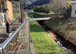 先日、グループホーム東郷の横を流れる川に白鳥が2羽、来てくれました。