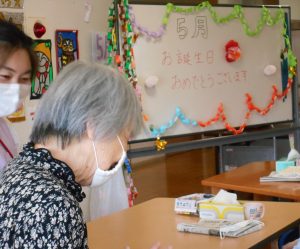 5月に誕生日を迎えたご利用者から感想を発表してもらったあと、