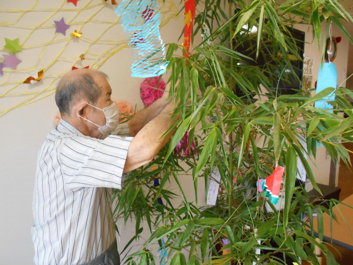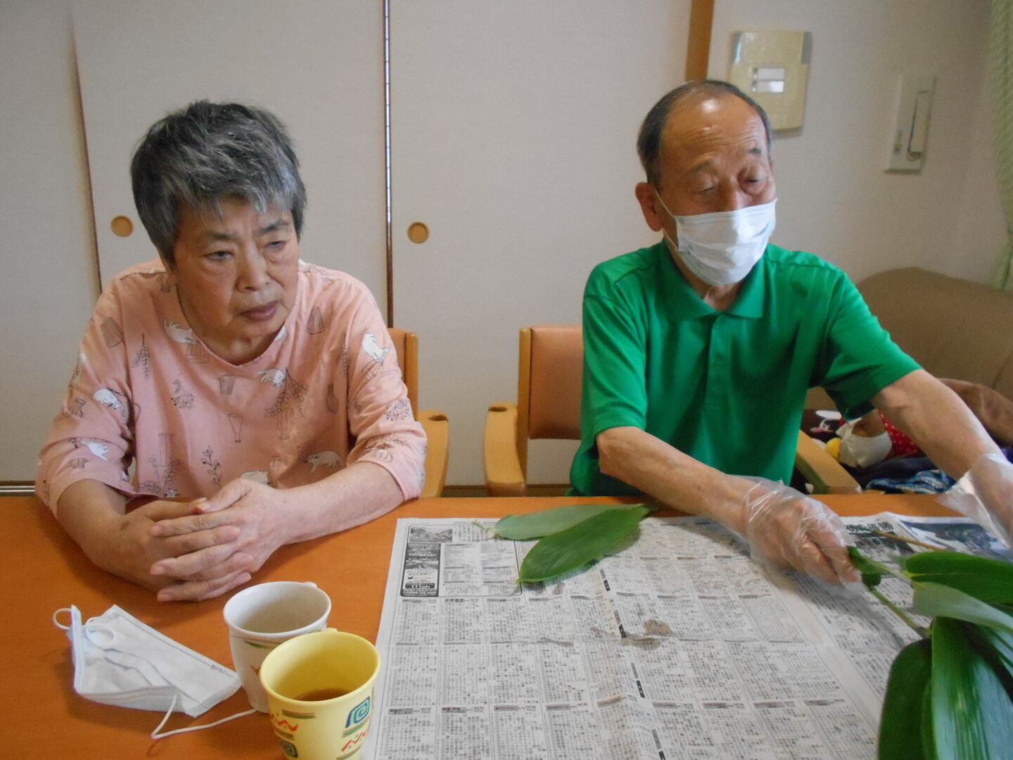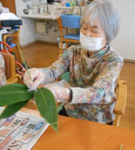 ご利用者さんには笹の葉を一枚ずつにする作業から、