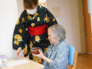 ご利用者は職員の浴衣姿を見て喜んでおられました。