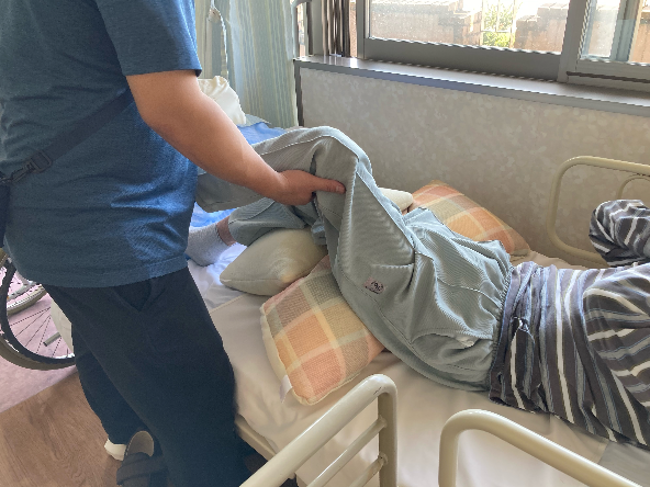 HOME > 新着情報 > お知らせ > 老健リハビリの紹介 老健リハビリの紹介 2023/08/09 お知らせ 写真は老健入所ご利用者のベッド上でのリハビリテーションの様子です。 関節の動きが悪くなるのを予防するための運動や、 筋力の低下を予防するために起立訓練等を ご利用者に合わせて適宜行っています。 投稿ナビゲーション 次のページ前のページ 一覧に戻る