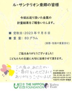 HOME > 新着情報 > お知らせ > TOOTH FAIRY プロジェクト ~ その後 ~ TOOTH FAIRY プロジェクト ~ その後 ~ 2023/09/26 お知らせ 以前こちらでもお伝えしたTOOTH FAIRYですが 先日1回目の提供を行いました。 (以前の記事) 全体からするとわずかな提供量かもしれませんが、 施設として社会に貢献できたことについて大変うれしく思います。 投稿ナビゲーション 次のページ前のページ 一覧に戻る