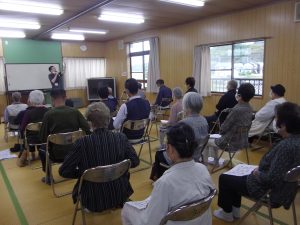 湯梨浜町松崎一区の介護予防教室へ言語聴覚士が訪問して嚥下や耳の聴こえについての研修を行いました。