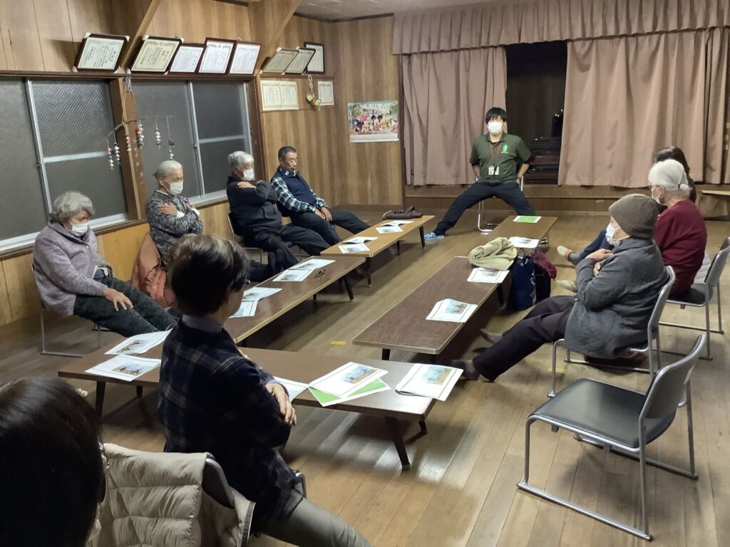 12月初旬、リハビリ職員が長江地区の高齢者サロンを訪問し、フレイル予防を目的とした運動の紹介を行いました。