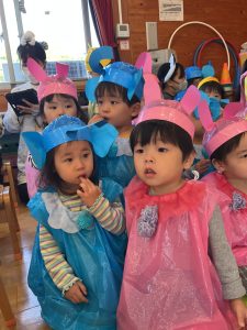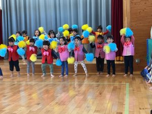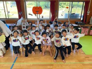 新着情報 2025.10.31 ル・サンテリオンよどえの方と一緒にハロウィンパーティーに参加しました! ル・サンテリオンよどえの利用者の方と一緒にハロウィンパーティーをしました! クラスごとに仮装をし、ハロウィン気分を楽しみながら、喜んで参加する可愛い子どもたちでした♪ ぺんぎん組は『チュウざぶろう』、ぱんだ組は『にゃんパラ☆ダンス』の踊りを元気いっぱいに披露してくれました😊 最後にプレゼント交換をし、素敵なプレゼントをいただき、笑顔いっぱいの子どもたちでした! 前へ 一覧へ 次へ