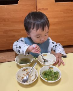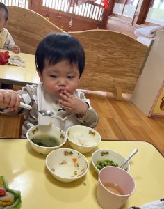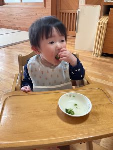 新着情報 2025.11.13 自分で食べられるよ☆【ひよこ組】 離乳食のお友だちはつかみ食べが出来るようになり、小さな食材もつまんで食べています♪ 完了食のお友だちは、スプーンを使って食べられるようになり、こぼしながらも自分で食べる喜びを感じています♪ 前へ 一覧へ
