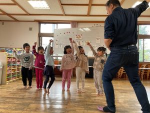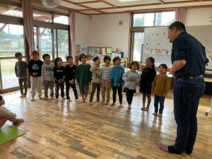 月に1度のアベル先生との英語遊びの時間を楽しみにしているくま組さん!前日の帰りの会で英語遊びがあること知らせると、「明日、アベル先生に会えるの楽しみ!」「こないだは○○って教えてもらったよね!」「明日は、どんな英語を教えてもらえるかな?」と、いつもわくわくしています♪