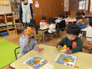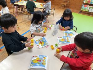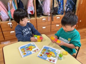 新着情報 2025.11.25 レゴブロック、楽しい!【ぺんぎん組】 あひるを作れるレゴブロックをレゴデュプロさんから一人ひとつずつプレゼントしていただき、みんなで遊びました😊 「これは、ここに付けるのかな?」「見て見て!あひるさんできた!」とそれぞれ手本を見ながらじっくりと組み立てる姿がありましたよ。 前へ 一覧へ