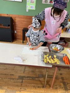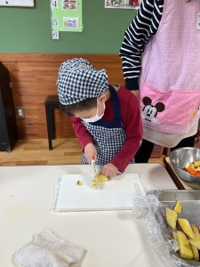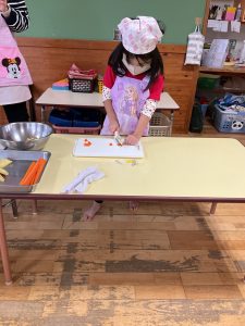 2回目ということもあり、一人で慎重に食材を切る姿が見られましたよ☺