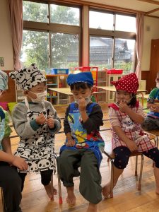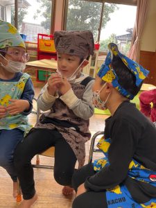 “だし”に使われている煮干しも、実際に触り、においをかいでみました。「良い匂いがする!」「香ばしい匂いがする!」「しっぽが硬い!」など、感想もたくさん聞かれました。