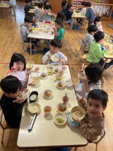 今回は「弓ヶ浜の味噌汁」を作り、給食で食べました。