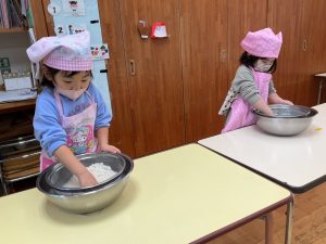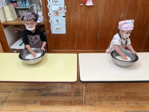 まずは猫の手を作って、一人ずつお米研ぎ!