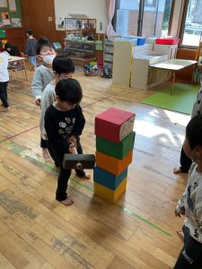 新着情報 2026.01.19 お正月遊び楽しかったよ!【ぱんだ組】 年が明け、保育初めの会や新年お楽しみ会に参加し、お正月遊びには色々なものがあることを知ったぱんだ組の子どもたち! 早速挑戦してみました。 「ふくわらい」「すごろく」「だるま落とし」「こま」「かるた」と、今後もブームがまだまだ続きそうです☆ 前へ 一覧へ 次へ