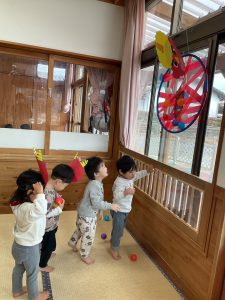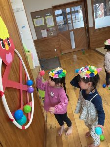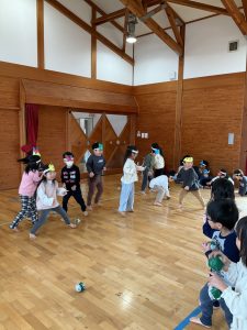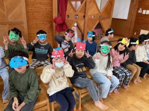 新着情報 2026.02.09 節分集会をしました! クラスごとで事前に鬼の角やお面を準備し、当日に被って参加しました。他クラスのお友だちを見て、「可愛い!」「上手だね!」と言って褒め合っていた子どもたち♪ みんなで「豆まき」の歌を歌った後は、節分の由来を聞いて、節分にちなんだ二択クイズに答えたり、職員劇を見たりと楽しく過ごしました! 集会後は各クラスで豆まきごっこを楽しみました☆ 前へ 一覧へ 次へ