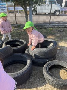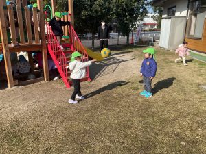 新着情報 2026.02.27 さむいのなんて、へっちゃらだ!【りす組】 冷たい風が吹く中でも外遊びが大好きなりす組さん! 元気いっぱいに走り回ったりボール遊びをしたりして体を動かしています♪ また、以上児のお兄さんお姉さんがブランコやポックリ、タイヤ遊びなどをしている様子を見て”やってみたい!”と、色々なことに興味を持ち、意欲的な姿があります✨ これから暖かくなってくるので、もっと外に出て遊んだりお散歩に出かけたりして楽しんでいきたいと思います😊 前へ 一覧へ 次へ
