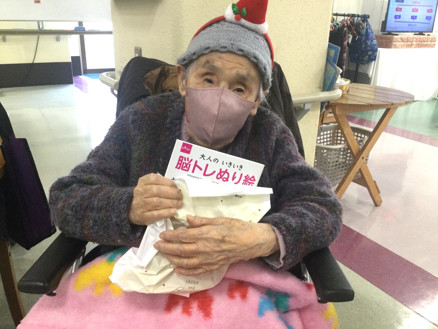 その後は、ご利用者同士で輪になってプレゼント交換を行い、笑い声があふれる楽しい時間に。