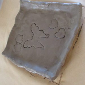 次にその粘土を平らにしてお皿の形にし、餃子を作る時のように粘土を寄せて淵を作ります。