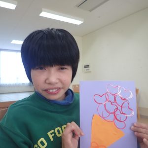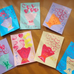 ハートをいっぱいスタンプし、想いがつまったステキなカードが出来上がりました。